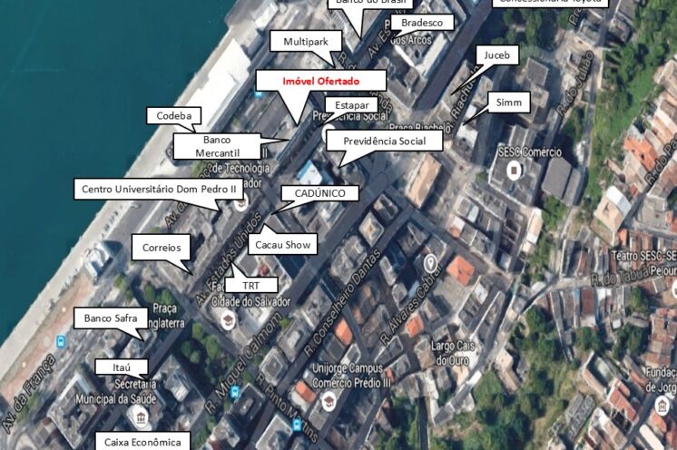 - Situada no mais tradicional polo financeiro e empresarial de Salvador, vizinho a bancos, faculdades, financeiras, escritórios, edifícios garagens, órgãos públicos diversos, tais como: TRT, Ministério da Economia, SPU, INSS, JUCEB, entre outros.